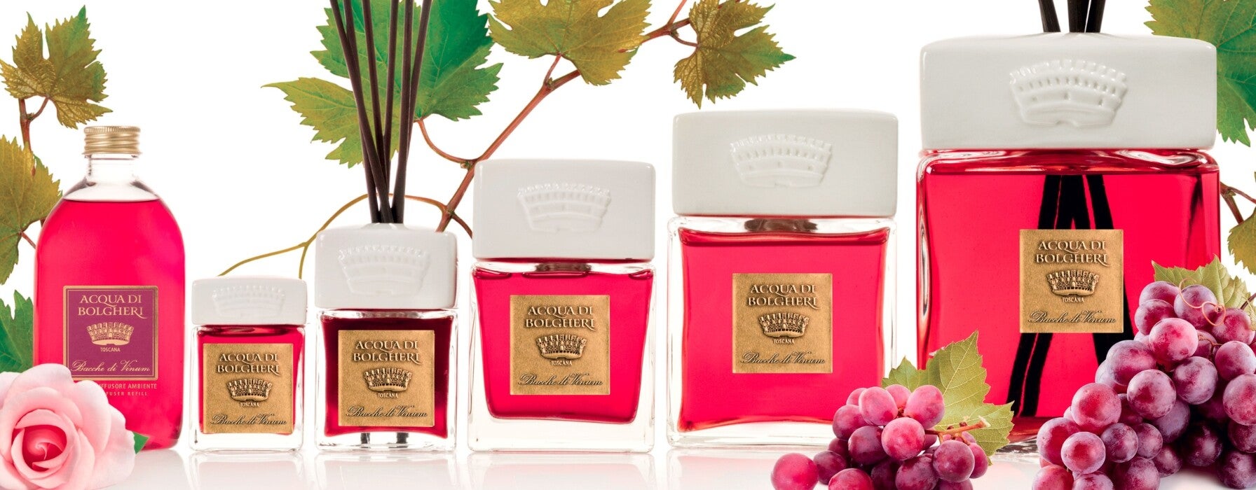 Bacche di Vinum, robijnrood en sensueel, evenwichtig en intens zoals de rode wijnen uit Bolgheri. Aroma's van druiven en rood fruit vervagen snel in een zoete ziel van rozen en jasmijn verdund door een licht spoor van witte muskus. Een eerbetoon aan het prachtige land Italië, aan zijn prestigieuze wijnen en aan de magische sferen die het omringen.