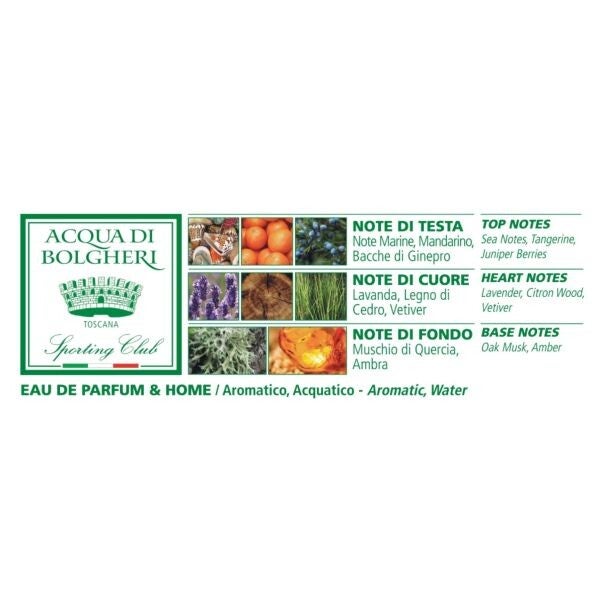 Sporting Club, oprecht en vol leven. Sprankelend als een duik in helder blauw, met mariene en mediterrane tonen. Het combineert het frisse tempo van een wandeling door Bolgheri met groene accenten en eindigt in een warme mix van muskus en amber. Het is een parfum dat net zo vrij en regenererend is als de energie van het lichaam tijdens het sporten.