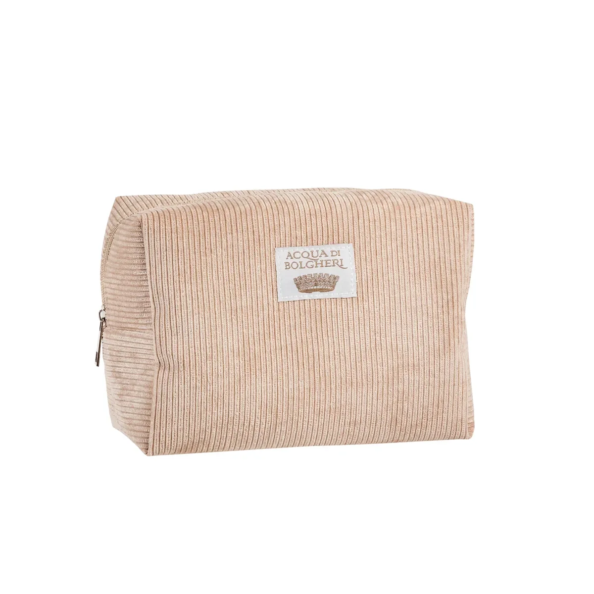 Elegante toilettas van ribfluweel. Perfect om te vullen met uw favoriete Acqua di Bolgheri-producten of om als cadeau te geven!